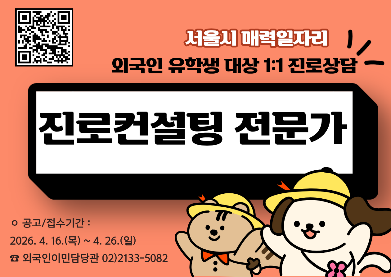- 업무 : 외국인 유학생 대상 1:1 진로취업상담, 기타 사무지원 등