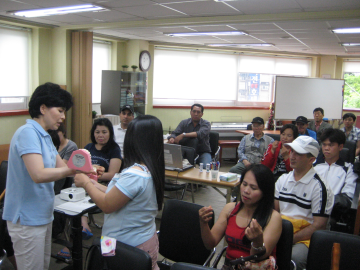 2011. 6. 26(일), 12:30~13:30 센터 3층에서 외국인근로자들을 대상으로 구강보건교육이 있었습니다. 교육에는 16명이 참석하였는데 김연희 선생님(성동구보건소 치과위생사)이 강의를 해주셨습니다. 교육 참석자에겐 칫솔 등을 선물로 증정했습니다.