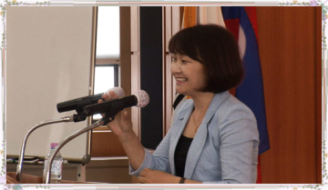 센터 수탁법인인 (사)한국해외봉사단원연합회(KOVA)가 위탁받아 운영하고 있는 한국해외봉사교육원에서 몽골 출신 결혼이주민인 침게씨가 해외봉사를 떠나게 될 예비봉사단원들을 대상으로 '대한민국에서 이주민으로 산다는 것'에 대해 강의를 하고 있는 모습. 침게씨는 현재 센터에서 계약직 직원으로 일하고 있다.