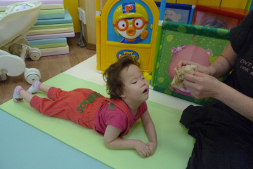 첼맥 엄마는 그런 아이가 자랑스러운지, 흐뭇한 표정으로 아이를 채근하며 고개를 들게 하기도 하고, 뒤집기를 하기도 하게 했습니다. 첼맥 엄마는 아이가 그만한 변화를 보일 수 있는 것은 물리치료를 받을 수 있도록 후원해 준 사람들이 있었기 때문에 가능했던 일임을 잘 알고 있습니다.