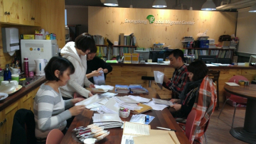 직원들이 소식지 발송 준비 모습입니다.