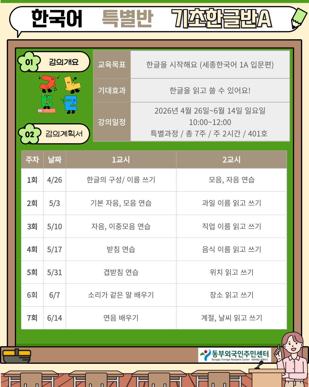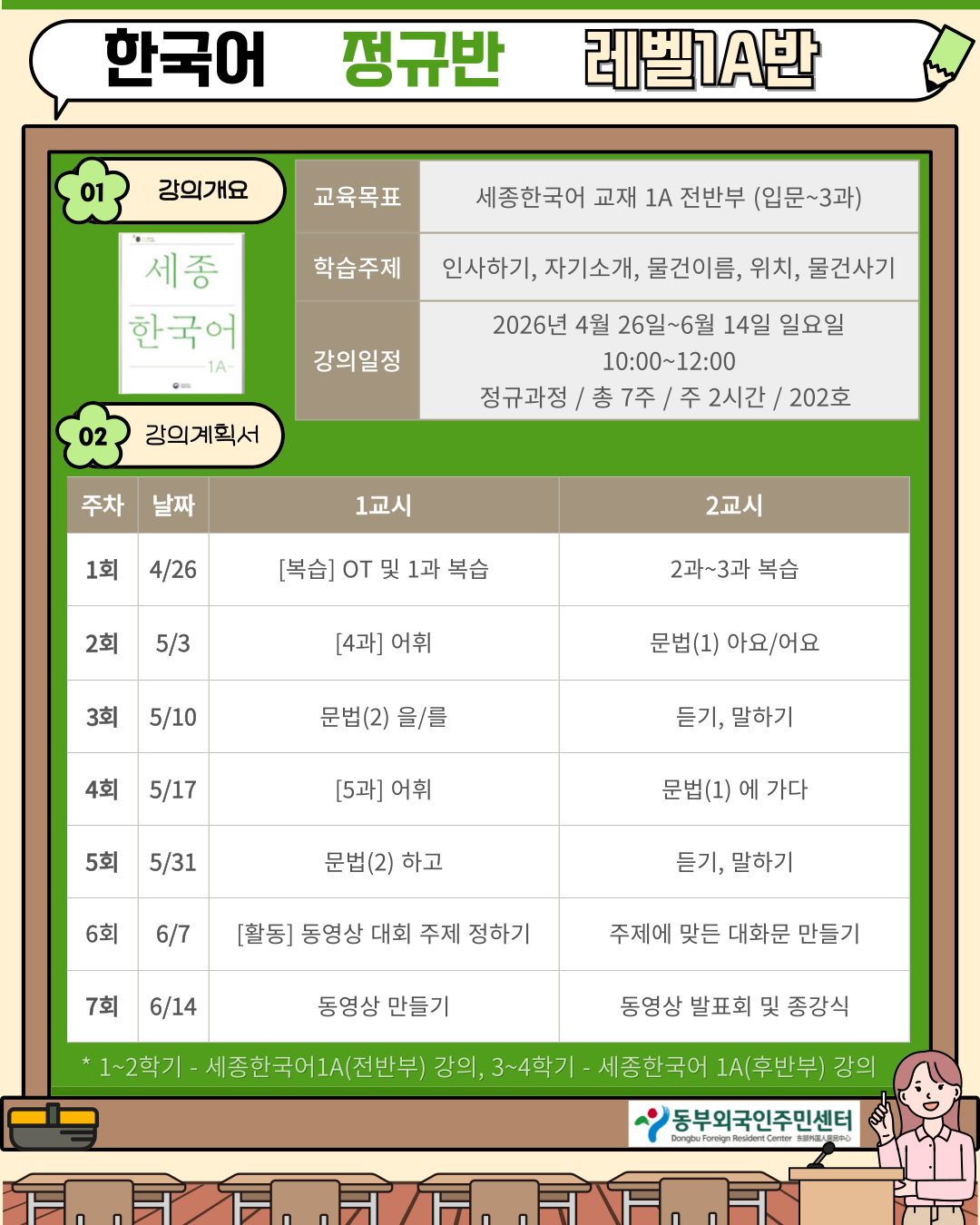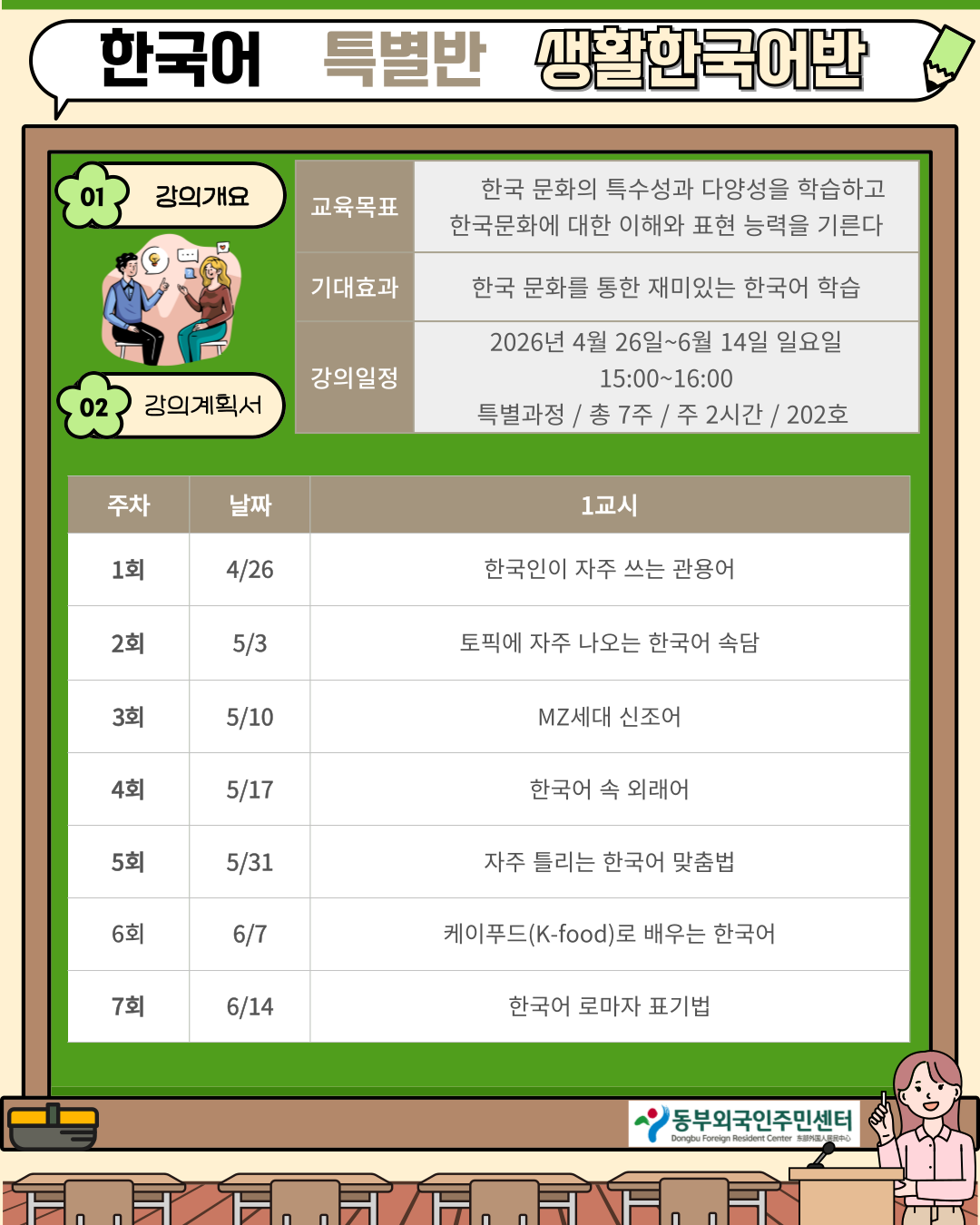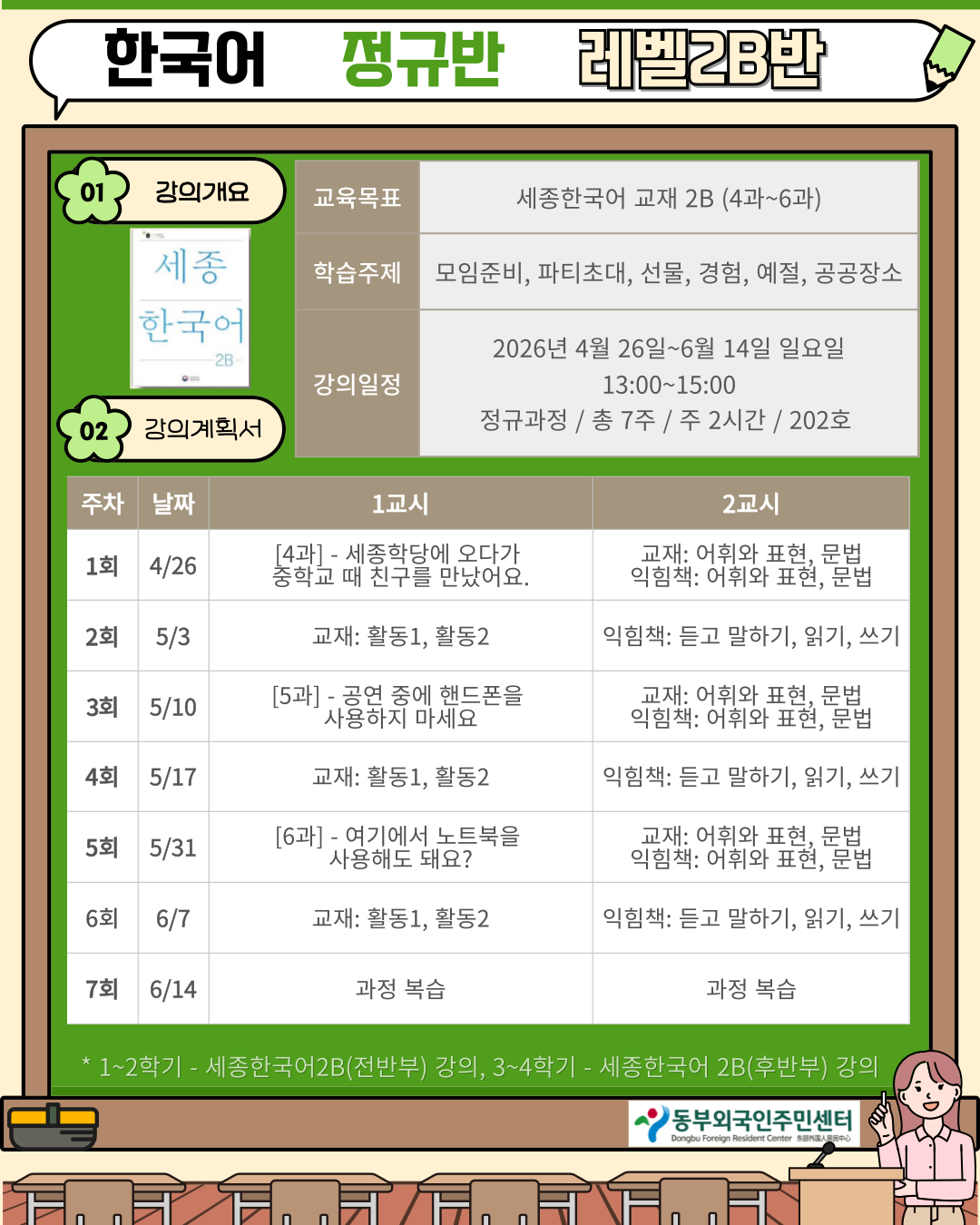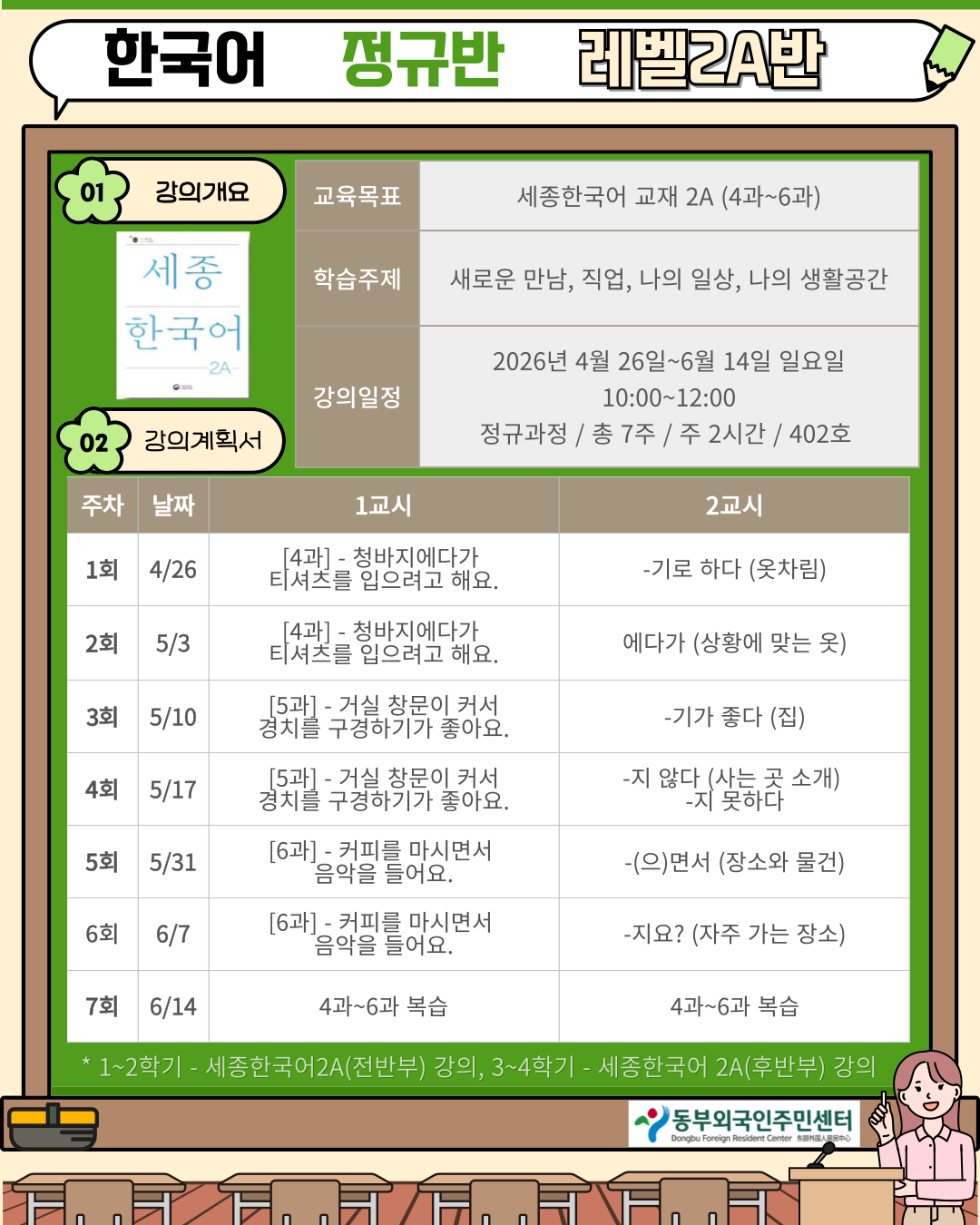 4월 26일 개강하는 2학기 한국어 수업을 소개합니다.