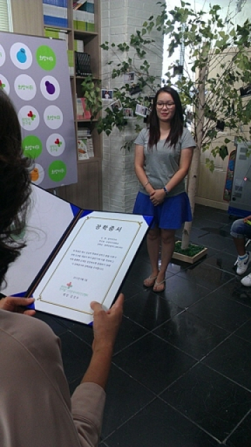 (사)한국이주민건강협회 희망의 친구들에 센터가 추천해서 센터 운영봉사자이면서 숙명여자대학교 경영학부에 재학 중인 암마리자야 학생이 오뚝이 장학생으로 선정되었습니다. 장학금 전달식 날이 센터가 쉬는 월요일이었지만 센터 봉사자와 함께 직원이 다녀왔습니다. 선정해 주신 건강협회에 깊이 감사드립니다.